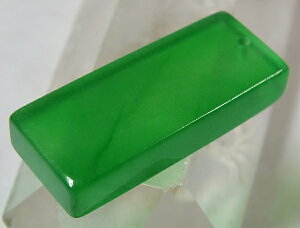 サイズ:39×16×厚8mm 重さ:15.8g ●緑色が綺麗なミャンマー翡翠。透明感の有る氷種(アイスジェダイト)です。上部に貫通穴が有るのでペンダントトップや下げ飾り等にもなります。 ☆商品につ...