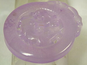 サイズ:34×19×12mm 重さ:11.9g 淡紫色が綺麗なミャンマー翡翠。透明感の有る氷種です。縁起柄の蓮実が彫り込まれています。上部に貫通穴があります。ペンダントトップや下げ飾り等に。