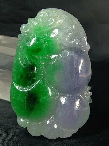 重さ:43g 淡紫色が混ざった珍しいミャンマー翡翠。縁起柄の貔貅が彫り込まれています。上部に貫通穴が有ります。ペンダントトップや下げ飾り等に。 ●「貔貅」(ひきゅう)とは、龍と同じく中国の想像上での動