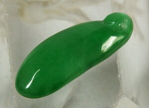 サイズ:37×16×厚11mm 重さ:10.6g 緑色が綺麗なミャンマー翡翠。こちらはかなり透明感の有る氷種です。縁起柄の甜瓜が彫り込まれています。上部に貫通穴があります。ペンダントトップや下げ飾り等に...