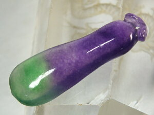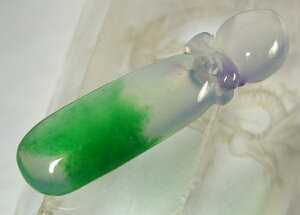 サイズ:35×12×厚6mm 重さ:4.7g ●緑色が綺麗なミャンマー翡翠。ラベンダー色も混ざった珍品です。透明感の有る氷種(アイスジェダイト)です。縁起柄の甜瓜が彫り込まれています。上部に貫通穴が...