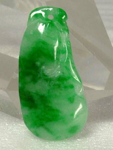 サイズ:37×17×厚13mm 重さ:11.3g 淡緑色が綺麗なミャンマー翡翠。こちらはかなり透明感の有る「氷種」です。縁起柄の瓢箪が彫り込まれています。上部に貫通穴が有ります。ペンダントトップや下げ飾り等に...