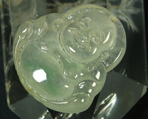 サイズ:縦28×26×厚7.5mm 重さ:9.6g ●淡緑色が綺麗なミャンマー翡翠。透明感の有る氷種(アイスジェダイト)です。彫られているのは、開運と、良縁・子宝の神、布袋様です。石コレクションやお守りに...
