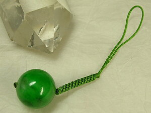 紐込み全長:約90mm 翡翠直径:約18mm 重さ:10g ●緑色が綺麗なミャンマー翡翠。迫力ある18mm玉のストラップです。