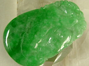 サイズ:43×32×11mm 重さ:19.6g ●緑色が綺麗なミャンマー翡翠。縁起柄の瓢箪と小猿が彫り込まれています。石コレクションやお守りに。上部に貫通穴が有るのでペンダントトップや下げ飾りにもなります...