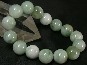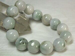 1P直径:約13mm 重さ:66g 【材質】天然翡翠(ジェイダイト、硬玉)・俗称「翡翠A貨」。 ●こちらは完全無処理で「A貨」と呼ばれるランクのミャンマー翡翠です。印象的な13mm玉のブレスレットです。 ☆環周サイズに
