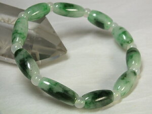 環周(内):約185mm 樽玉1Pサイズ(約):長24×直径12mm 重さ:47.5g ●緑色が綺麗なミャンマー翡翠。気軽に装着できる24mm樽型玉のブレスレット。間の丸粒石は瑪瑙です。 ☆環周サイズに御注意下さい...
