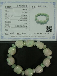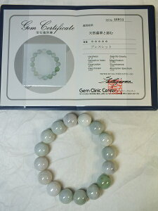 1P直径:約13mm 重さ:68.8g 【材質】天然翡翠(ジェイダイト、硬玉)・俗称「翡翠A貨」。 ●こちらは完全無処理で「A貨」と呼ばれるランクのミャンマー翡翠です。印象的な13mm玉のブレスレットです。 ☆鑑別書付き...