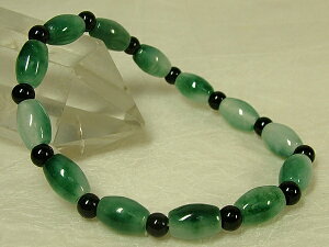 環周(内):約180mm 1Pサイズ(約):長11×直径8mm 重さ:16.9g ●緑色が綺麗なミャンマー翡翠。気軽に装着出来る管玉のブレスです。間の黒粒石はオニキスです。 ☆環周サイズに御注意下さい。