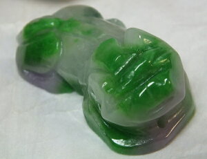サイズ:47×24×18mm 重さ:30g ●緑色が綺麗なミャンマー翡翠。仄かにラベンダー色も混ざった珍品です。中国の定番的な神獣「貔貅」(ひきゅう)が彫り込まれています。石コレクションや置物に。前...