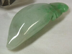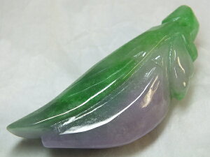 サイズ:56×21×厚17mm 重さ:31.1g ●緑色が綺麗なミャンマー翡翠。仄かにラベンダー色も混ざった珍品です。縁起柄の甜瓜が彫り込まれています。石コレクションやお守りに。上部に貫通穴が有るの...