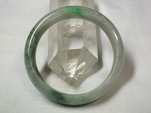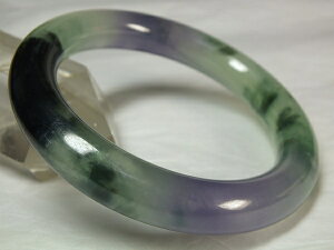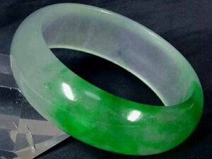 内直径:約58mm 高:16mm 厚さ:7mm 重さ:64.6g ●緑色が綺麗なミャンマー翡翠。仄かにラベンダー色も混ざった珍品です。透明感のある氷種(アイスジェダイト)です。飾り彫りのないシンプルなデザインですが...