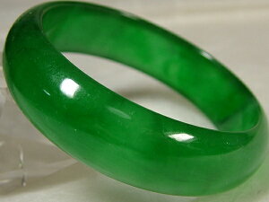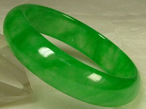 重さ:55g ●緑色が綺麗なミャンマー翡翠。透明感のある氷種(アイスジェダイト)です。彫りのないシンプルなデザインですが、一塊の石から作られた贅沢な逸品です。 ●中国では翡翠の腕輪は女性の