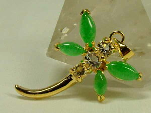 重さ:2.6g 緑色が綺麗なミャンマー翡翠。可愛い蜻蛉(トンボ)形のペンダントトップです。 金具は金メッキ、ダイヤ状の小粒石はキュービックジルコニア、翡翠はトリートメント処理をさ