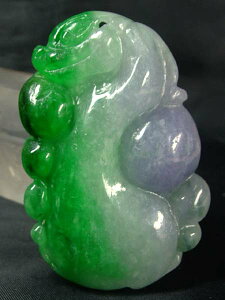 重さ:45.7g 淡紫色が混ざった珍しいミャンマー翡翠。縁起柄の貔貅が彫り込まれています。上部に貫通穴が有ります。ペンダントトップや下げ飾り等に。 ●「貔貅」(ひきゅう)とは、龍と同じく中国の想像上での動