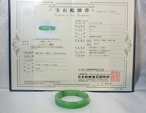重さ:51.6g ●緑色が綺麗なミャンマー翡翠。透明感のある氷種翡翠(アイスジェダイト)です。飾り彫りのないシンプルなデザインですが、一塊の石から作られた贅沢な逸品です。 ●中国では翡翠の腕