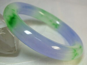内直径:約57mm 高:18mm 厚さ:8mm 重さ:73.7g 緑色が綺麗なミャンマー翡翠。透明感の有る「氷種」です。僅かにラベンダー色も混ざり色味の濃淡が場所によって違う、飽きのこないバングルです...