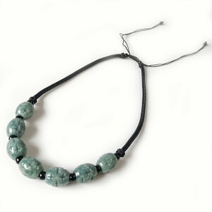 商品情報 素材 ミャンマー産翡翠オニキスシルク紐 サイズ 全長 約40cm~約65cm 調整可能翡翠 横 約14.5mm 厚み 約13.5mmオニキス 約6mm珠 注意書き ※モニター発色の具合により色合いが異なる場合がございます。