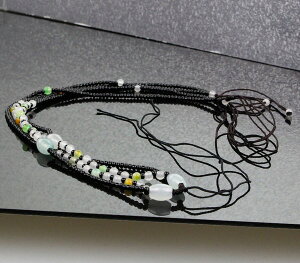 ギフト対応 【パワーストーンの意味・言われ】 翡翠(ヒスイ)[硬玉]:健康長寿をあらわす。人望を集め、事業を成功へ導く。 【サイズ】紐長さは50cmから80cmまで調節できます。 【使用パワーストーン】 翡翠(ヒスイ)、オニキス 【重