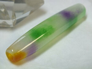 サイズ:長56×直径10mm 穴直径:約3mm 重さ:10.3g ●翡色やラベンダー色も混ざったカラフルなミャンマー翡翠です。オリジナルアクセサリー作り等に。 ☆商品につきましては注意を払った検品を行っておりますが、稀に石の表面にクラッ