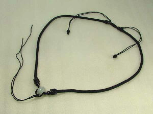 環周(約):最長600mm 翡翠1P直径:約8mm 重さ:2g ●落ち着きの有る黒が印象的な飾り紐。先端の紐にお好みの石を通し、オリジナルペンダントを作成して下さい。ポイントにミャンマー翡翠の丸玉が1石使われています...