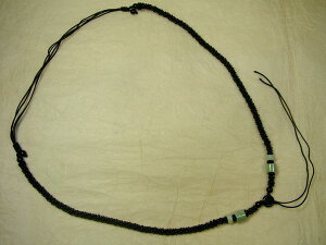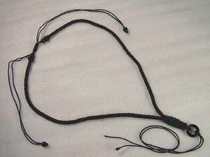 環周(約):460〜620mm 直径:約5mm 円柱型翡翠:直径9×長7mm 重さ:16.1g ●落ち着きの有る黒が印象的な飾り紐。先端の紐にお好みの石を通し、オリジナルペンダントを作成して下さい。小粒ビーズを紐状に編み...