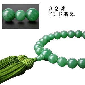 翡翠の優しいグリーンに心が癒されます。 京都数珠製造卸組合認定品ですので、安心して京念珠をお買い求め下さい。 房は、本場・京都の数珠職人が丹念に仕上げた正絹房を使用。 ■サイズ:22珠サイズ(一般サイズ)...