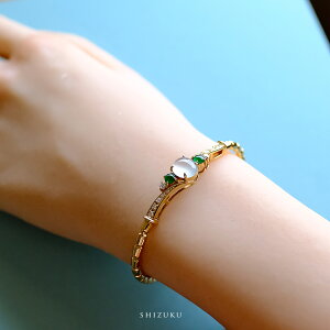 ミャンマー産鮮やかで深みのあるグリーンと、ほんのりグリーン氷翡翠を使ったブレスレット、小粒で普段使いしやすいデザイン