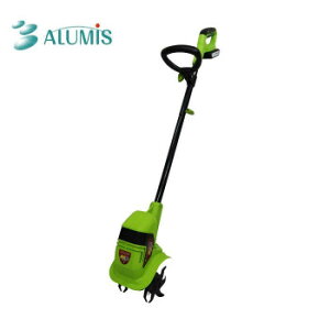 アルミス 家庭用電動耕運機「耕す造」 ●簡単・安全をモットーに、ガーデニングや家庭菜園を楽しく手伝います。 ●(約)4.0kg超軽量タイプで女性もラクラク操作できる電動耕うん機。