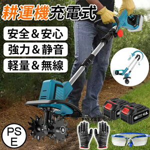 【2025新型】電動耕運機 充電式 ミニ耕運機 小型 家庭用 充電式耕うん機 コードレス 小型 種まき機 4枚刃 強力 ハイパワー 耕うん機 大容量電池2個付き 18v 耕運機 マキタバッテリー併用 畑...