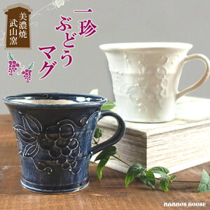 商品説明 一珍 葡萄 マグカップ 説明 美濃焼の職人さんによる「一珍」という絵付け技法を用いて、ひとつひとつ丁寧に、まるでケーキのデコレーションのように立体的に葡萄の絵柄が描かれた温かみのあるデザインマグカップ 豊穣をあらわ