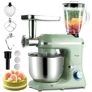 【送料無料】スタンドミキサー 6L 大容量 業務用 家庭用 多機能 肉挽き機&ジューサー付属 卓上ミキサー 6段階スピード調節 3種類アタッチメント付き 肉挽き器カッター パン捏ね ケーキ/離乳食/和菓子/餃子の皮作り...