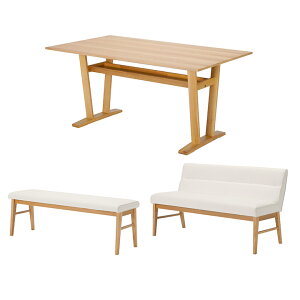 テーブル×1 チェア×2 背付きベンチ×1 ■商品の特徴 天板に天然木の突板を使用した、木の温もりを感じられるテーブル。 便利な棚板付きで、天板の上をすっきり使うことができます。 セットのベンチとチェアは