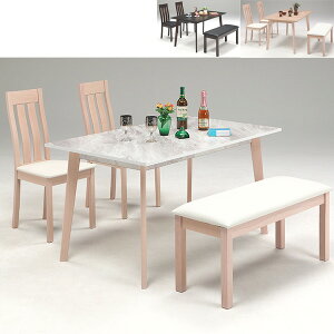 ■セット内容 180cm幅テーブル×1 145cm幅ベンチ×1 チェア×3。■商品の特徴 石目調の天板に木脚の調和が美しいダイニングテーブルセット。テーブル天板にはキズや熱に強いメラミンを使用しています...