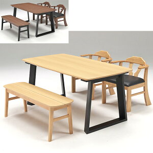 オシャレなダイニング4点セット。2色取り扱い有り。サイズ テーブル:幅160X奥行85X高さ71cm チェア:幅62X奥行58X高さ72(SH43)cm ベンチ:幅120X奥行35X高さ43cm。材質 テー...