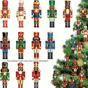 適応性のあるデザイン: デスクトップの木製くるみ割り人形としても、吊り下げ飾りとしても、これらのピースはどんなクリスマスの装飾テーマにもシームレスにフィットします。装飾的なくるみ割り人形、クリスマスの木製人形 豊かな色彩: クルミ材の...