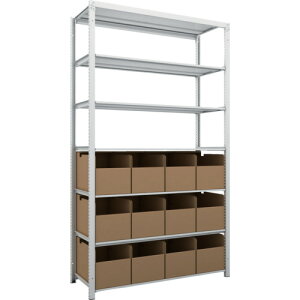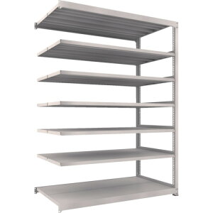 簡単ボルトレス構造なので組立て、中板移動、解体が間単に出来ます。 ●寸法:W1200×D450×H2400mm ●段数:7段 ●耐荷重(棚1段当り):150kg ●耐荷重(棚1連当り):600kg ●本体色:ホワイトグレー...