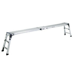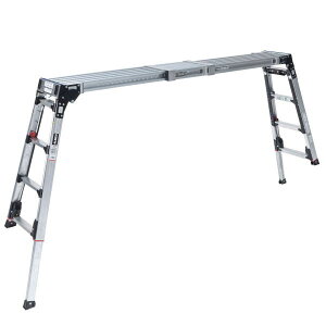 ステップ幅60mmの幅広タイプです。●一体式で軽量なため持ち運びがしやすく、設置も簡単です。●天板が1400〜1800mmまで伸縮するため狭いスペースから広いスペースまで設置可能です。【仕様】●最大使用質量(kg):150●天板高さ(m)