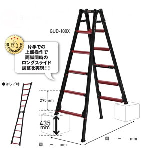 ・アルインコ ブラックカラータイプ! GUD-Xシリーズは伸縮脚もブラックです! ・カラーがブラックのはしご兼用・伸縮脚の脚立です 伸縮脚部分の高さ調整は最大435mm ・立ったまま片手での上部レバー操作で両脚同時の...