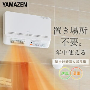 山善(YAMAZEN) 壁掛式暖房 脱衣所温風ヒーター (温風/送風切替) リモコン付きヘアドライヤー機能/切タイマー付き DFX-RJ12(W) ホワイト 本体サイズ 幅49×奥行10.5×高さ31cm...