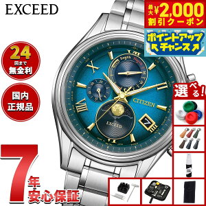 CITIZEN EXCEED 光発電エコ・ドライブ電波時計 ダイレクトフライト ムーンフェイズ BY1026-65A メンズ ウオッチ 日本製。電波受信した日付情報からムーブメント内部で独自の計算式を用いてその日の月齢を計算し...