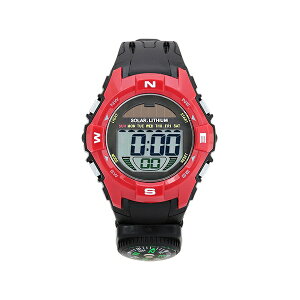 サイズ:直径44.5×厚さ15mm 太陽光発電(補助ソーラーパワー併用型) コンパス付き 5気圧防水 ELライト カレンダー ストップウォッチ アラーム スヌーズ。