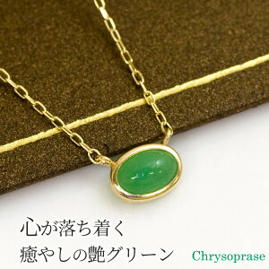 クリソプレーズとイエローゴールドで上品に仕上げたジュエル。シンプルで洗練されたデザインなので、どんな服装にも合わせやすい。大人の女性好みの落ちついたデザインです。・オーバルのカボションカットを裏留めの枠で引っかかりが