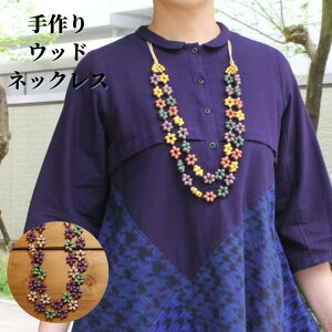 商品説明木のぬくもりがやさしい、ナチュラルテイストのネックレスです。 たくさんの小花が華やかな印象です。 重さ39グラムの軽いつけ心地。 ひもはお好みの長さに調節可能、金属が苦手な方にも安心です。 ひとつつけるだけで、おしゃ
