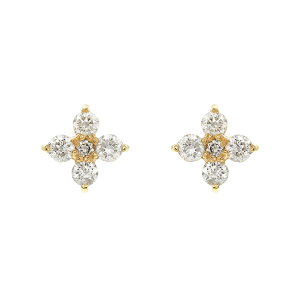 フラワーモチーフでダイヤモンドがきらめくのイエローゴールドのピアス。イエローゴールドとダイヤモンドを組み合わせることで、華やかな雰囲気になり、表情まで明るくしてくれそうです。