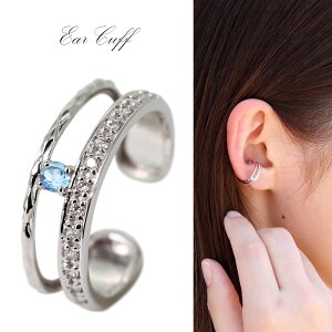 11月誕生石ブルートパーズを使用したプラチナ製の、2連デザインのイヤーカフです。耳にはめ込むタイプなので、ピアスホールがない方も簡単に装着することができます。重ね付けをしたりお好きな位置につけてお楽しみください。