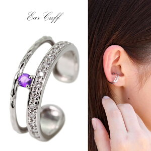 2月誕生石アメジストを使用したプラチナ製の、2連デザインのイヤーカフです。耳にはめ込むタイプなので、ピアスホールがない方も簡単に装着することができます。重ね付けをしたりお好きな位置につけてお楽しみください。