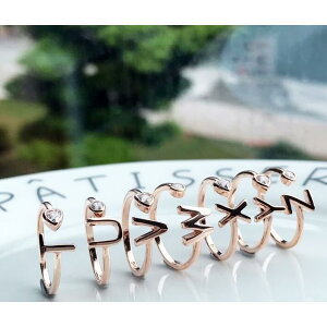 ハート型のストーンが可愛いアルファベットリング【サイズについて】フリーサイズ【素材について】合金