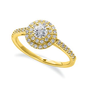 18金イエローゴールド製の枠に直径約4.1mmの主石をセットした高級感溢れるリングです。主石の周囲を取り巻くようにメレ(小粒石)ダイヤモンドがセットされた物は取り巻きリングと呼ばれ、主石をより豪華に飾り立ててリング全体にボリュ