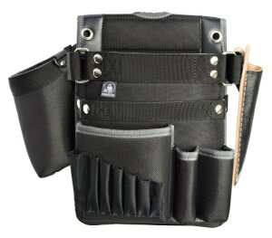 カラー本体ブラック 本体サイズ(cm)幅40x奥行き5x高さ31 フック内寸 畳んだ時の高さ カラビナ径 リング径 ストラップの長さ ポケット数2弾+2ポケット+両サイド2個 特徴●墨坪ホルダー大、ノミ差しを装備。●腰ヨレしない補強パ...